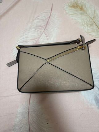 Bolso de mano Loewe en piel con un diseño geométrico y moderno. Su color beige lo hace muy versátil. - Piel texturizada. - Cierre de solapa. - Asa superior. - Logo grabado.