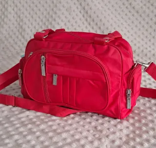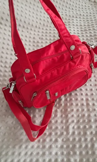 Bolso con asa de mano y bandolera regulable extraible. Bolsillos frontales y laterales con cierre cremallera.