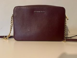 Bolso de mano Michael Kors con cadena dorada. - Diseño elegante y moderno. - Color rojo intenso. - Cadena metálica dorada.