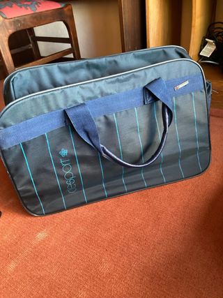Práctica bolsa de deporte o viaje con un diseño moderno, 38 cm ancho y 34 alto, en la parte baja tiene una cremallera que al abrirla queda una altura de 43 cm.q - Compartimento principal con cierre de cremallera. - Bolsillo frontal con cremallera. - Bolsillos laterales. - Asas de mano.