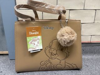 Bolso de mano con diseño de Bambi de Disney. Un accesorio encantador con un acabado suave. - Personaje de Bambi grabado. - Detalle de pompón de pelo. - Cierre superior.