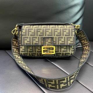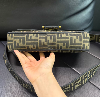 Bolso de hombro Fendi con el icónico estampado Zucca. - Diseño clásico en lona. - Detalles metálicos dorados. - Correa ajustable para llevar al hombro.