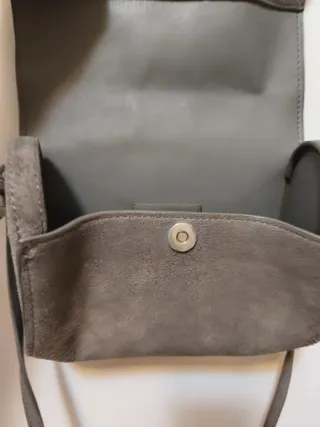 Bolso de mano con un diseño moderno y elegante. - Material: ante. - Cierre de solapa.