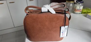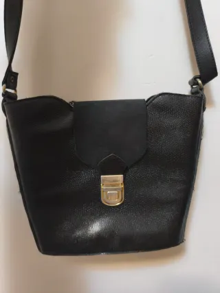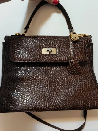 Bolso de mano o bandolera con un diseño elegante y moderno. - Acabado texturizado que imita la piel de reptil. - Correa ajustable para llevar cruzado o al hombro. - Cierre de cremallera. - Detalle de etiqueta.
