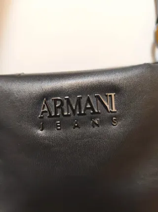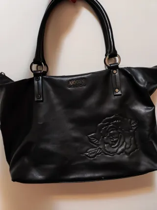 Elegante bolso de Armani Jeans en color negro. Presenta un diseño grabado de una rosa en relieve en la parte frontal, añadiendo un toque distintivo. - Asa de mano cómoda. - Cierre principal con cremallera. - Detalle de logo metálico de la marca.