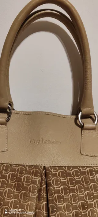 Elegante bolso de mano de la marca Guy Laroche. - Diseño con estampado de logo. - Asa de mano. - Acabado en piel. - Pliegues decorativos.