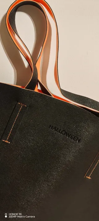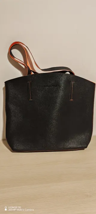 Bolso de mano HALLOWEEN con un diseño moderno y llamativo. - Color principal negro. - Detalles ENTERIOR en color naranja. - Asa cómoda para llevar al hombro o en la mano.