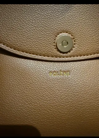 Bolso de mano Polène en un elegante tono beige oscuro. Su diseño combina a la perfección con cualquier atuendo. - Material: Piel texturizada. - Detalle de costuras marcadas. - Adorno metálico dorado.