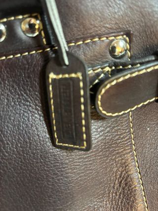 Bolso de mano Loewe de estilo vintage, con un diseño elegante y atemporal. - Confeccionado en piel de alta calidad. - Combinación de tonos marrones y detalles dorados. - Cierre de cremallera. - Asa ajustable para llevar al hombro.