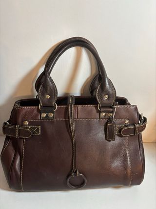 Elegante bolso de piel en color marrón. - Material: Piel. - Color: Marrón. - Cierre con hebilla y detalle de anilla. - Costuras decorativas - modelo inspirado en el estilo del icónico Celine Boogie o el Dior Jeans Pocket, ambos conocidos por su diseño estructurado, asas superiores y detalles de hebillas laterales.