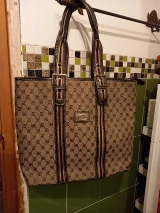 Bolso espacioso con un diseño elegante y práctico. - Amplio compartimento principal con cremallera - Asas de mano cómodas y regulables. - Detalle de logo metálico en la parte frontal. - Patrón de monograma distintivo en toda la superficie.