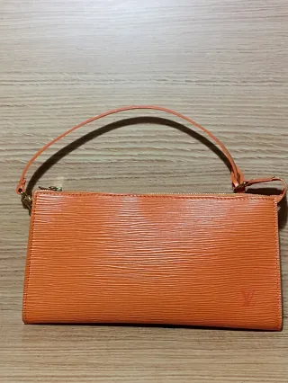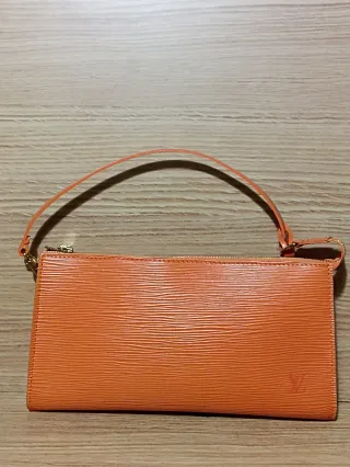 Bolso Pochette de Louis Vuitton en un vibrante color naranja. Un accesorio elegante y práctico. - Diseño clásico de la marca. - Material con textura distintiva.