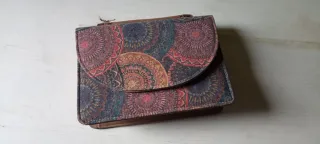 Bolso de mano con un diseño llamativo y original. - Material de corcho. - Estampado de mandalas. - Asa corta. - Correa larga desmontable. Medidas 21x14x7 cm.