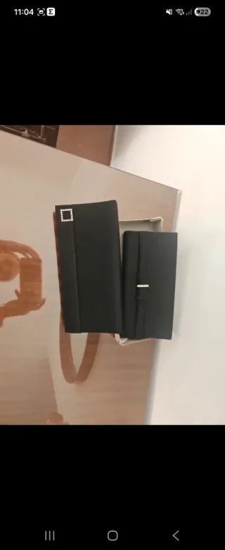 Dos bolsos de mano elegantes. - Uno con detalle metálico plateado. - El otro con un pequeño cuadrado metálico.