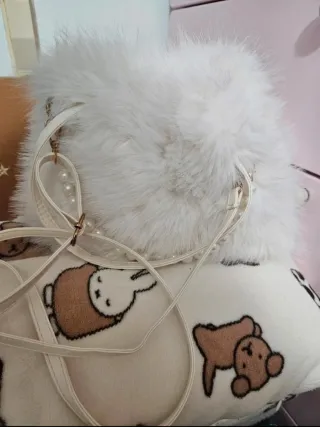 Bolso blanco de pelo sintético con un detalle de perlas. - Material exterior: pelo sintético. - Adorno: cadena de perlas. - Correa: ajustable. -no recuerdo donde lo adquiri nunca usado🤍😊