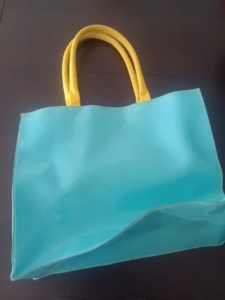 Elegante bolso de mano en un llamativo color azul turquesa. Su diseño curvo y el detalle de la solapa texturizada le dan un toque moderno. - Material: Piel sintética. - Cierre: Solapa con broche oculto. - Diseño: Curvo con solapa texturizada.