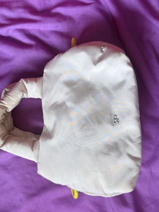 Bolso de mano con un diseño acolchado y detalles en amarillo. - Asa acolchada. - Cierre de cremallera. - Pequeño logo bordado en la parte frontal. falta correa