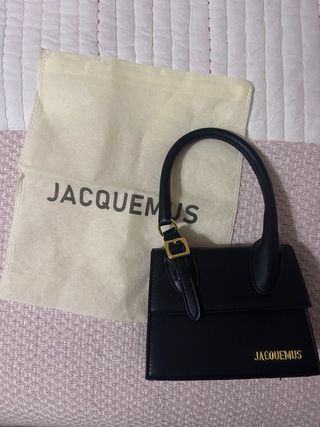 Bolso de mano de la marca Jacquemus en color negro. Incluye su bolsa guardapolvo y correa de quita y pon - Diseño elegante y compacto. - Asa superior. - Detalle de hebilla. - Logo dorado en la parte frontal.