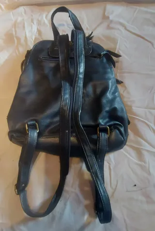 Conjunto de dos bolsos, uno de color verde con textura y otro negro tipo mochila. - Bolso verde con asas y cierre de cremallera. - Mochila negra con cierre de cordón y solapa. - Incluye un llavero decorativo.