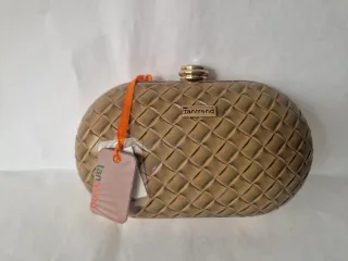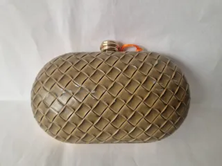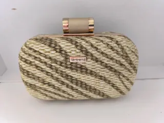 Elegante bolso de mano con un diseño texturizado que combina tonos dorados y plateados. Cuenta con una correa de muñeca para mayor comodidad. - Textura tejida. - Cierre de solapa. - Correa de muñeca desmontable.