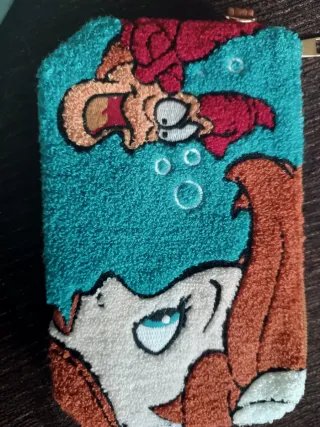 Cartera de mano con un diseño inspirado en Ariel. - Cierre de cremallera. - Acabado en tejido tipo toalla.