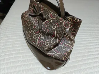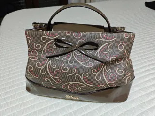 Elegante bolso de mano con un diseño texturizado. - Acabado en tonos marrones y dorados. - Cierre superior dorado. - Detalle de logo metálico de la marca.