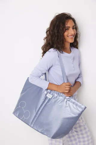 Bolso Grande Mickey Mouse Nylon Azul Plateado