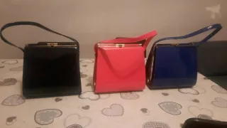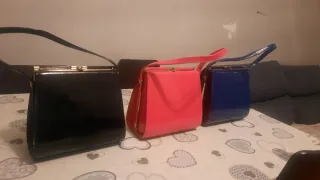 Conjunto de tres bolsos de mano con un diseño elegante - Tres colores disponibles: negro, azul y rojo. - Cierre metálico dorado. - Asas de mano. - Estilo clásico y sofisticado.