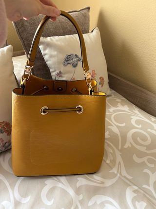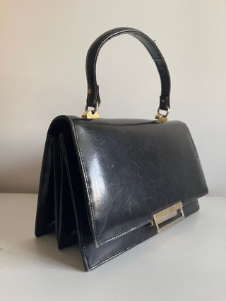 Elegante bolso de mano de Zara, perfecto para llevar tus esenciales con estilo. - Material: Polipiel. - Cierre de cremallera. - Dos asas de mano. - Correa de hombro ajustable y extraíble. - Bolsillo exterior con cremallera.