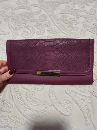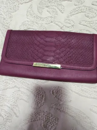 Bolso-cartera de mano Guess nuevo, con los plásticos en broche. Bonita clutch color wine snake marca Guess original. Acabado en piel