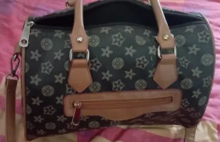 Bolso de mano con un diseño estampado y detalles en piel sintética. - Cierre principal con cremallera. - Bolsillo exterior con cremallera. - Asa corta para llevar en la mano. - Correa larga ajustable para llevar al hombro.