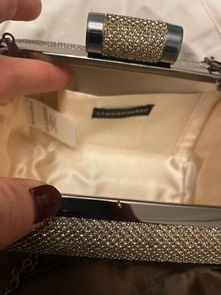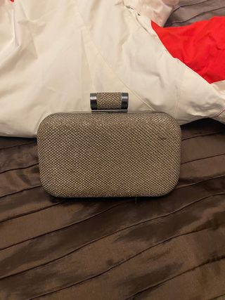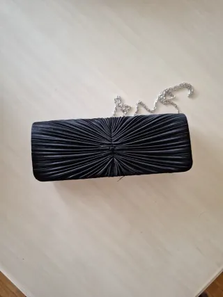 Elegante bolso de mano tipo clutch, perfecto para eventos y fiestas. - Diseño plisado con un acabado satinado. - Cadena metálica plateada para llevar al hombro o cruzado. medida 25x10x5