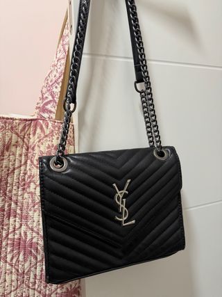 Elegante bolso de mano con el icónico logo de Yves Saint Laurent. - Diseño clásico y sofisticado. - Acabado liso y pulido. Escuchó ofertas gracias