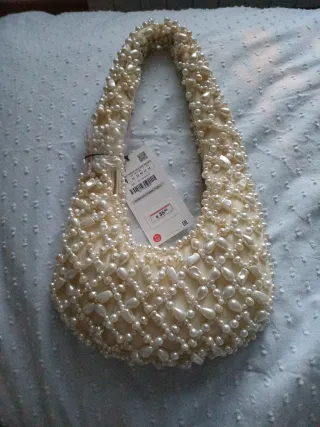 Bolso de mano de Zara, adornado con perlas, ideal para ocasiones especiales. Sin estrenar. - Diseño con incrustaciones de perlas. - Asa de hombro. - Cierre seguro.