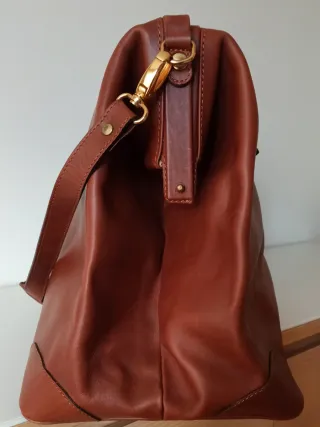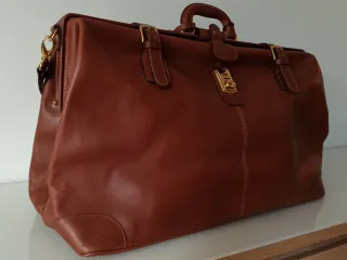Elegante bolsa de viaje de estilo vintage, confeccionada en cuero natural. - Diseño clásico y atemporal. - Acabados de alta calidad. - Asa superior y correa para hombro. - Cierre de seguridad dorado Medidas: 60 x35 x 27 cm Recogida en MANO en Madrid