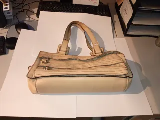 Bolso de la marca Tous original, combina lana y cuero. - Diseño tejido en lana color beige. - Detalles y asa en cuero marrón - Esquinas reforzadas en cuero marrón . - un bolsillo interior con cremallera y dos más sin cremallera