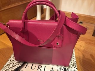 Elegante bolso de mano Furla en un vibrante color. Perfecto para añadir un toque de color a cualquier atuendo. - Diseño estructurado. - Asas superiores, y cinturón banderola. - Cierre de cremallera. - con su bolsa de tienda - se vende por falta de uso, apenas usado - Tamaño mediano
