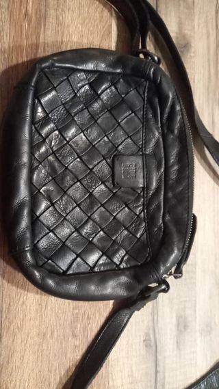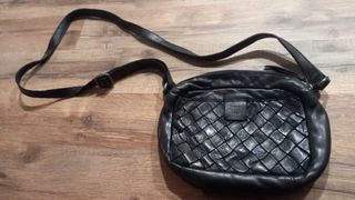 Bolso bandolera BIBA en piel auténtica negra, con detalle trenzado en el frontal. Piel suave y flexible, muy agradable al tacto. Tiene cierre de cremallera superior y correa ajustable, ideal para llevar cruzado o al hombro. Cómodo, ligero y fácil de combinar para el día a día. Características • Marca: BIBA (logo visible en las fotos) • Material: 100% piel • Color: negro • Medidas: 24 × 18 cm • Cierre: cremallera • Correa: ajustable • Estado: muy buen estado, uso normal de la piel
