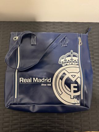 Bolso con el escudo y el nombre del Real Madrid. - Diseño con cremalleras laterales. Entrega en mano en Callao o Sol.