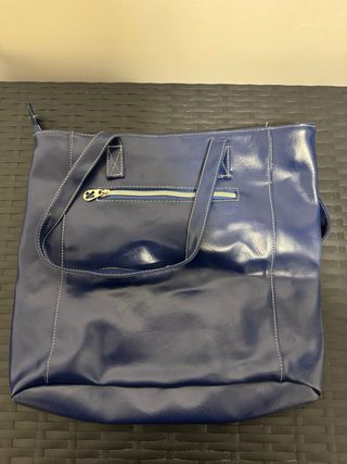 Bolso de mano de la marca "Parfois", de color azul. Viene con la asa incluida y un neceser con cremallera para llevar dentro extraible. - Material con textura. - Asas superiores. - Correa ajustable.