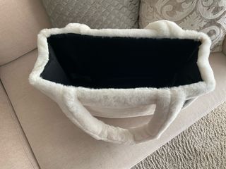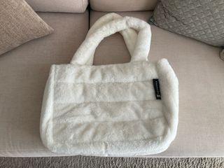 Bolso de peluche de la marca Sephora, en color blanco y a estrenar. - Material suave y esponjoso. - Diseño acolchado con líneas horizontales. - Etiqueta de la marca visible.