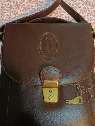 Elegante bolso vintage de la prestigiosa marca Cartier. - Diseño clásico y atemporal. - Acabado en piel de alta calidad. - Detalle de cierre metálico dorado. - Incluye su llave original.