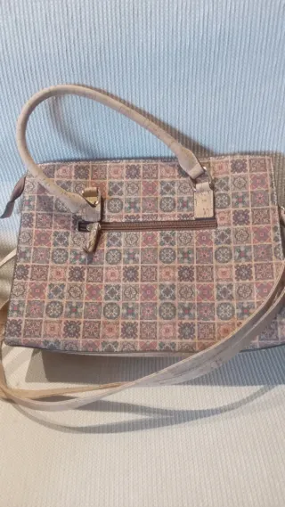 Bolso con asas y Bandolera original de la firma Bimba y Lola. Color beige, nuevo con etiquetas. Correas ajustable y extraíbles. - Cierre de cremallera. - Logo de la marca en relieve. Se entrega con bolsa de la firma. Nunca usado. Precio fijo