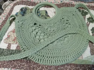 Bolso de crochet de la marca HUG & CLAU. - Diseño tejido a mano. - Asa redonda. - Detalle de calados.