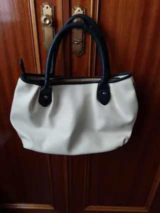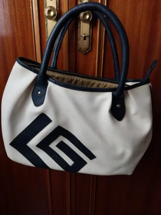 Elegante bolso de piel de la marca Guy Laroche. - Diseño bicolor en blanco y azul. - Asa de mano. - Detalle de logo en contraste.