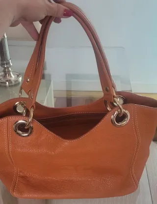 Bolso de mano de cuero color naranja de la marca española ACOSTA. WALLAPOP NO RECONOCE QUE EXISTA ESA MARCA, ASÍ QUE HE TENIDO QUE PONER OTRA, PERO EN LAS IMÁGENES QUEDA CLARO A CUÁL CORRESPONDE