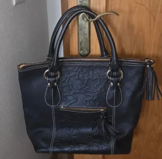 Vendo bolso marca loewe, para quien sepa de estos bolsos, tiene el nombre de la marca en todos los herrajes, me lo dio alguien que me dijo que si es original pero de todos modos no es mi estilo. Es de cuero real con tela vaquera, está en buen estado si tiene algo de uso y desgaste sobre todo en las esquinas, el detalle donde va colgando el candado se sale un poco (no tiene el candando pero sí las llaves)