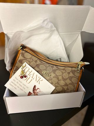 Bolso de mano . Un accesorio elegante y práctico. . - Incluye bolsa protectora. - Detalle de charm con hoja y piedra.