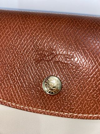 Bolso de la marca Longchamp. - Color marrón y negro. - Cierre con botón a presión y solapa. - Asas de mano.