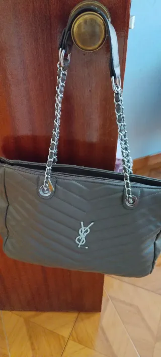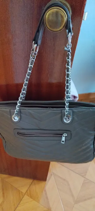 Bolso grande de polipiel con un diseño moderno y elegante. Cuenta con un bolsillo exterior con cremallera. - Material: Polipiel. - Diseño acolchado en zigzag. - Cadena metálica para colgar.